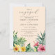 Este convite de festa de engajamento com flores tropicais em aquarela pêssego elegante pode ser personalizado com suas informações em tipografia chic. Criado por Thisisnotme©