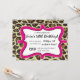 Convite de festa cor-de-rosa brilhante e leopardo. Pode ser ótimo para um aniversário, noite dos anos 80 ou despedida de solteira!