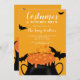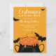 Fúria de figurinos e bruxas! Celebre o seu assustador Dia das Bruxas e convide amigos e família com este moderno e simples morcegos de cor laranja e tipografia com um pote de poção das bruxas. O fundo da cor é totalmente editável, você pode mover os morcegos.