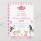 Este adorável convite apresenta animais de fazenda com balões e falsos poços de ouro.