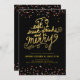 Comece uma celebração de feriado de excelente com este convite de festas de Natal. Coma, beba e seja feliz. Escrita manuscrita falsa folha de ouro num fundo preto com cor-de-rosa, dourado prateado falso brilho.