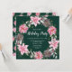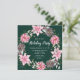 Este convite para festas divertidas e festivas apresenta uma coroa aquática de natal com poinsetos cor-de-rosa e holly sobre um fundo verde escuro. O texto combina o script manuscrito e as fontes serif para um aspecto elegante e sofisticado. Isto é perfeito para festas de férias, embrulhos, festas de janto, casa aberta e muito mais.