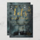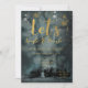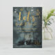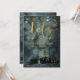 Um convite de férias elegante e elegante foi lançado em belas e profundas cores verdes, cor d'água, céu nevado sobre uma cena de vergreens com uma fonte viva de caligrafia dourada convidando seus convidados para uma noite de jingle e mingle.