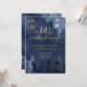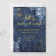 Um convite de férias elegante e elegante foi lançado em belos marinhos azuis, cor d'água, cor azul-d'água, céu nevado sobre uma cena de verdes silenciosos e flocos de neve brancos e dourados com uma fonte de caligrafia balançada de ouro vivo convidando seus hóspedes para uma noite de jingle e mingle.
