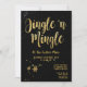 Um feriado elegante e clássico convida na clássica caligrafia negra e jorrando dourada com um brilho de flocos de neve delicados, convidando seus hóspedes a jingle and mingle na sua festa de comemoração de feriado. A parte de trás da placa dobra como uma carta de feriados felizes.