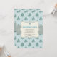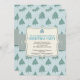 Um fundo de árvores de Natal azul estilizadas contra uma cinza azul angustiada faz um fundo festivo para este convite de festas de Natal. Um quadro decorativo colocado em uma fita de cinza nebulosa contém informações da parte. Perfeito para uma festa de feriado corporativo ou para uma festa de limpeza de árvores em casa. Disponível com produtos correspondentes.