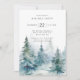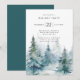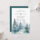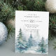 Convite de festa de férias apresenta árvores de pinheiro de inverno em aquarela com tipografia moderna.