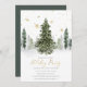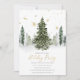 Este convite de festas modernas é uma escolha maravilhosa para o seu evento. Apresentando ilustrações de árvores de coloração aquosa verde e falso falso flocos de neve de folha de ouro. A letra do script de caligrafia de tendência é emparelhada com um serifa clássico para uma aparência de chic. Use as ferramentas de modelo on-line para personalizar este convite exclusivo para o janto de Natal da sua família, eventos de feriados corporativos ou festas de Natal do escritório. FOLHA DE OURO NÃO REAL