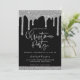 O brilho da prata natalina mergulha no Convite de festas de Natal com gotas de brilho sujo e uma caligrafia festiva sobre fundo preto quântico. Um convite divertido e festivo para sua festa pessoal, corporativa ou de escritório. Perfeito para sua estética de luxo! Você está pingando no luxo, então seus convites deveriam ser também! Entre em contato conosco em cedarandstring@gmail.com se precisar de assistência com o design ou produtos correspondentes.