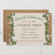 Areia de praia, peixe-estrela e decoração sagrada desta convite de festas de Natal tropical. Convide amigos para uma festa no mar para celebrar a temporada de festas. O texto verde curvo no topo e o estilo de fonte impresso divertido para informação é centrado sobre um painel delimitado por estrelas brancas e holly swag verde. O fundo é areia castanha.