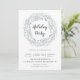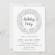 Convite para festas de férias apresentando uma elegante coroa floral e galhos com bagas brancas.A leveza e as cores dessaturadas simulam um dia de inverno nítido.