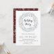 Na parte de trás do cartão há um padrão acentuado de bagas com um fundo de marrom vermelho veludo.