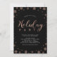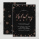 Comemore a temporada com este convite de festas modernas. Este design apresenta flocos de neve na moda e tipografia em uma folha de ouro rosa falso sobre fundo preto. Você pode personalizar as cores do texto e do plano de fundo. Perfeito para uma festa de janto sobre temas de rosa dourado e preto, ou festa de feriado empresarial.