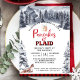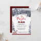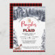 Celebre a época de férias (ou aniversário de outono/inverno) com uma festa divertida de Pancakes e Xadrez! Convite com montanhas de aquarelas e paisagem florestal e raposa tocando na neve. Padrão de verificação preto e vermelho na xadrez de búfalo na parte traseira e detalhes na frente. —Para ajustes de texto, você pode editar este design usando a ferramenta de criação.