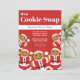 Um convite para festas de troca de biscoitos divertidos com um esquema de cor vermelha e branca que apresenta cinco Santas, sorridentes, pão de gengibre. Papais noeis Gingerbird Festa de Feriado de Cookap Convocação de Comida Sweetsham Arte | ©Melissa Patton - Artista/Ilustrador