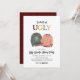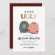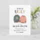 Um belo convite para sua festa de suéter feia com cores mudas e um design moderno. O texto inteligente "Está prestes a ficar UGLY" aparece no topo e é acentuado com um gráfico desenhado manualmente de suéteres de férias pegajosos.