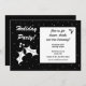 Um convite para festas de Natal preto e branco com minha design de estrelas brancas e sagradas.