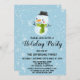 Celebre o feriado com este bonitinho bonitinho, festivo boneco de neve com um cachecol verde e um convite para festas de chapéu preto. Os detalhes da festa são escritos em uma tipografia branca e esbranquiçada com um fundo azul claro com flocos de neve brancos em queda. Este convite é perfeito para uma festa de Natal/ Natal/ inverno!