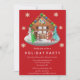 "Entra numa festiva terra maravilhosa de inverno com o nosso vibrante convite para festas vermelhas! Adorado com uma ilustração caprichosa de uma charmosa casa de pão de gengibre, doces deliciosos, e árvores poeirentas, este convite dá o tom perfeito para uma celebração alegre. Junte seus entes queridos e amigos para uma noite cheia de risos, calor e alegria de férias."