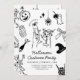 Defina o tom para uma na moda e assustadora festa de Dia das Bruxas adulta com este convite de festas preto-e-branco. Apresentando óculos martini, esqueletos dançarinos, fantasmas e ilustrações ao estilo vintage, este elegante modelo é perfeito para encontros de Halloween com um toque de classe.