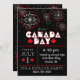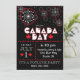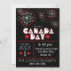 Fogos de artifício temporários, vermelhos e brancos, sobre fundo preto, com sotaques de folhas de maple vermelha para o Dia do Canadá.