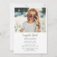 Convite de festas de Formando de Script Moderno para Graduação de Foto 2024 que você pode editar facilmente adicionando os detalhes da festa e as fotos do formando no lado frontal e inverso
