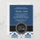CONVITE DE FESTAS DE FORMANDO DE FOTOGRAFIAS COM MARINHO DE COR DAMASCO AZUL E BRANCO. Garota, divertida, bonita, mas sofisticada e elegante, este Convite de festas personalizado de primeira classe azul e branco de damask 2014 com sua foto de formando é a forma perfeita de convidar seus convidados para a festa de formatura de sua filha. Quer seja para seu mais velho segundo grau, formando universitário ou graduação universitária, este convite de festas de formando danado será perfeito para ela. Design de Elke Clarke©.
