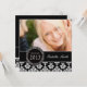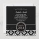 CONVITE DE FESTAS DE FORMANDO DE FOTOGRAFIAS DE MENINA COM COR DAMASCO DE VINTAGEM PRETA E BRANCA. Garota, divertida, bonita, mas sofisticada e elegante, este Convite de festas personalizado de Damask de 2013, preto e branco, com sua foto de formando, é a forma perfeita de convidar seus convidados para a festa de formatura de sua filha. Quer seja para seu mais velho segundo grau, formando universitário ou graduação universitária, este convite de festas de formando danado será perfeito para ela. Design de Elke Clarke©.