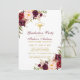 Cartão de Convite para Festas de formatura Médica Floral Dourada e Borgonha com Cores Aquáticas - Texto Dourado - Bordas Arredondadas - Borda Borgonha