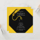 A formatura única convida o modelo com boné preto clássico e ouro em fundo amarelo.