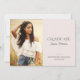 Este anúncio de graduação minimalista apresenta uma simples tipografia e uma paleta de cor rosa e preta. Na frente, uma foto vertical é exibida no lado esquerdo. À direita, o "Formando" é escrito na tipografia moderna de todos os bonés, com o nome do formando escrito na caligrafia abaixo. Na base, adicione a escola de formando e o ano de graduação. Na parte de trás, há uma modelo para os detalhes da festa de formatura. A tipografia é escrita a preto contra fundo rosa-pincelado na frente e no verso.