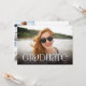 Anúncio/convite de festas de graduação moderno apresentando uma fotografia do formando com tipografia que diz 'FORMANDO', seu nome, ano de aula e local de estudo na frente e no verso de mais duas fotos e um modelo de celebração que é fácil de personalizar.