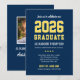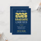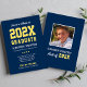 Anuncie a sua classe de formando de segundo grau 2023 em estilo com este anúncio de graduação e convite de festas. Um cartão de dois lados apresenta um design simples e masculino com uma carta inspirada em jersey desportiva, perfeita para o seu estudante e atleta de varSIDADE. Marinho azul, amarelo e branco. O espaço para incluir uma foto de mais velho do formando está incluído no verso. Todas as cores podem ser personalizadas.
