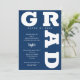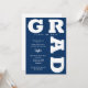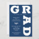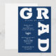 FORMANDO as curvas em negrito marinho azul de inscrição ao redor das bordas desses convites brancos de festa de formatura de fundo. CONSULTE TODA A COLEÇÃO de combinações de cores pré-feitas, placas de papel, guardanapos, caixas de favor e convites de festa de formatura em nossa loja.