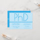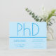 Um convite para uma festa de formatura de doutorado. Este convite minimalista é azul claro e escuro. Todas as palavras e ambas as cores podem ser personalizadas.