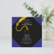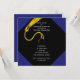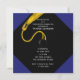 Modelo de convite de formatura único com um clássico boné preto e dourado em um fundo azul real.