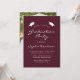 Este convite clássico e moderno para a festa de formatura apresenta um texto branco sobre um fundo burgundy. A palavra "Graduação" e o nome do formando aparecem em letra casual moderna, sob um par de bonés de conselho de argamassa branca. Personalize o convite com detalhes da parte e substitua a imagem de exemplo no verso por uma foto do seu formando.