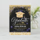 Cartão de Convite para Festas de formatura Glitter Dourada Elegante. Celebre sua festa de formatura com esta elegante e festiva carta de convite de luxo brilhante, brilhante, de ouro, com belas caligrafias manuscritas. Todos os textos estão pré-organizados para que você personalize fácil e rapidamente com seus próprios detalhes.