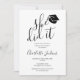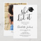 Este convite de formatura "ela fez" preto e branco elegante pode ser personalizado com a foto especial do seu graduado no verso. Criado por Thisisnotme©