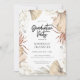 Palma seca da Boêmia Chic e estrutura floral, convite à festa de formatura. A parte traseira da placa apresenta cor laranja sólida de ferrugem no deserto.