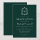 Este design de convite clássico e elegante para festa de formatura de apresenta um monograma branco inicial em letra serif aberta rodeada por uma crista de acanthus de uma linha de fundo verde-escuro. Personalize o texto com o nome do formando e os detalhes da parte. A parte traseira da carta está verde estável. Ideal para segundo grau, faculdade ou formando universitário.