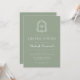 Este design de convite clássico e elegante para festa de formatura de apresenta um monograma branco inicial em letra serif aberta rodeada por uma crista de acanthus de uma crista verde-sábio. Personalize o texto com o nome do formando e os detalhes da parte. A parte traseira da placa é verde estável. Ideal para segundo grau, faculdade ou formando universitário.