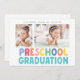 Texto multicolorido colorido 2 Festa de formatura da pré-escola de fotos disponível digitalmente e impressa. Basta substituir as duas fotos de exemplo por suas próprias e personalizar com os detalhes da sua festa no verso. A graduação pré-escolar está em letras modernas multicoloridas.