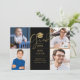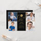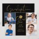 Um convite de festa de formatura sofisticado com quatro fotos especiais e tipografia dourada estilosa em um fundo preto. Criado por Thisisnotme©