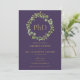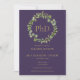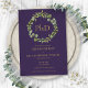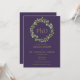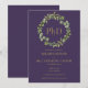 Com uma grinalda botânica elegante e tipografia dourada clássica em um fundo roxo, este convite de formatura de doutorado pode ser personalizado com o nome e informações do formando. Criado por Thisisnotme©
