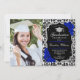 Festa de formatura com sua foto. Apresenta cor damasco branca preta, fonte de script, rosas azuis reais, tassel e confetti. Elegante design azul esbranquiçado de safira branca com falso prata brilhante. Perfeito para uma celebração elegante.