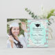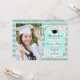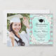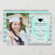 Festa de formatura com sua foto. Apresenta faixas, fontes de script, rosas brancas, tassel e confetti. Turquesa elegante, design verde de menta com prata brilhante. Perfeito para uma celebração elegante.