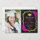 Festa de formatura com sua foto. Possui fonte de script, rosas rosa-quente, tassel e confetti. Elegante design de fúcsia branca negra com ouro brilhante. Perfeito para uma celebração elegante.