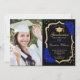 Festa de formatura com sua foto. Recursos, fonte de script, rosas azuis reais, tassel e confetti. Elegante design azul esbranquiçado de safira branca com ouro brilhante falso. Perfeito para uma celebração elegante.