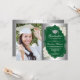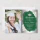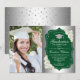 Festa de formatura com sua foto. Apresenta fontes de script, rosas brancas, tassel e confetti. Elegante verde, design branco com falso brilho prateado. Perfeito para uma celebração elegante.